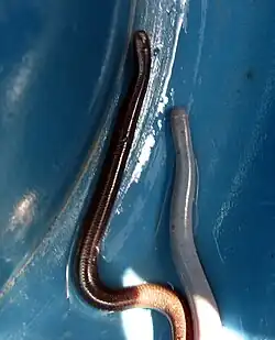 Indotyphlops braminus se nourrit d'oeufs de termites et de fourmis[3].