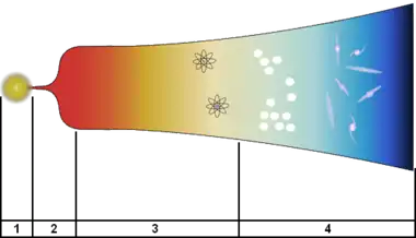 Cette phase d'expansion, nommée « inflation » en 1979 par son premier théoricien, le physicien américain Alan Guth[1], se serait produite très tôt dans l'histoire de l'Univers, à l'issue de l'ère de Planck ou peu après, de l'ordre de 10-35 seconde après le Big Bang.
