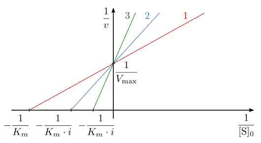 Dans le cas d'une inhibition compétitive, une enzyme peut, à chaque instant, être liée à son substrat, à son inhibiteur compétitif, ou à aucun d'entre eux, mais ne peut pas être liée à la fois à son inhibiteur et à son substrat.