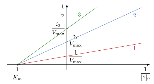 Ce type d'inhibition réduit la vitesse maximum Vmax de la réaction chimique catalysée sans modifier la constante de Michaelis Km de l'enzyme.
