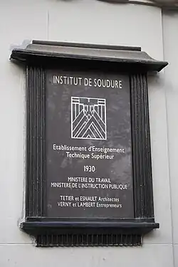 , sur Bibliothèque nationale de France, Gallica, Pierre Johanet (Paris), (consulté le ), p. 48-50. - ↑ « PSS / Ancien Institut de Soudure (Paris, France) », sur pss-archi.eu (consulté le ).