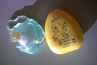 - d'un masque rigide qui se plaque sur le visage (par exemple le Pocket mask de Laerdal)