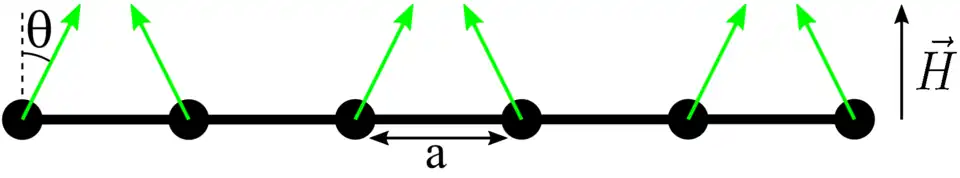 On considère ici une chaîne de spins, avec une interaction antiferromagnétique entre premiers voisins et un champ magnétique externe . On a donc le hamiltonien suivant