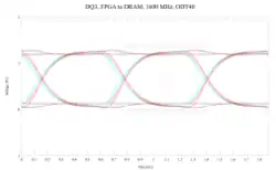 - Exécuter des simulations SPICE. Analyser les résultats de la simulation pour décider si une nouvelle conception est nécessaire. On analyse couramment les résultats avec un diagramme de l'œil et en calculant un budget de synchronisation[6].