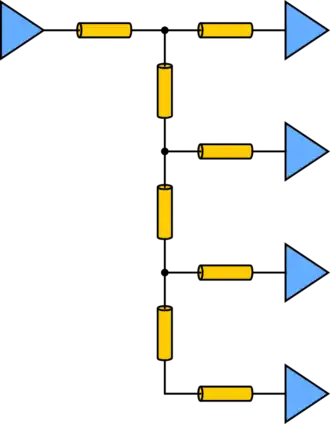 Pour les interfaces où plusieurs composants reçoivent le même signal de la même ligne, comme dans les configurations avec fond de panier, on doit diviser la ligne à un certain endroit pour desservir tous les récepteurs. On doit s'attendre sur certains tronçons à des asymétries d'impédance. Les interfaces multi composants comprennent les interfaces LVDS, les bancs Commandes/Adresses des RAM DDR2/DDR3/DDR4, le RS485 et le bus CAN. Les deux principales topologies multi composants existantes sont l'arborescence et le fly-by.