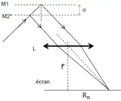 - soit en formant l'image du coin d'air (c’est-à-dire des miroirs) sur un écran grâce à une lentille convergente;