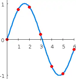 • Dans la version la plus simple (interpolation lagrangienne), on impose simplement que le polynôme passe par tous les points donnés. Étant donné un ensemble de n + 1 points, i.e. couples (xi , yi) (où les réels xi sont distincts 2 à 2, les yi pouvant être des réels, complexes ou éléments d'un espace vectoriel quelconque), on cherche à trouver un polynôme p (à coefficients de la même nature que les yi) de degré n au plus, qui vérifie :