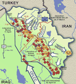 Bien que les combats pour l’opération Iraqi Freedom aient véritablement commencé le , les préparatifs ont débuté le 1er mars 1991, au lendemain de la fin de l’opération Desert Storm (17 janvier 1991 - 28 février 1991). L’opération Iraqi Freedom marque le dernier chapitre d’une implication continue des États-Unis dans le golfe Persique depuis vingt ans, avec notamment la présence continue de troupes américaines et britanniques sur le territoire irakien dans le cadre des opérations :
