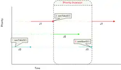 Pour les exemples, nous utiliseront des tâches A, B, et C, A ayant la plus forte priorité, C la plus faible, et B une priorité intermédiaire, et un mutex X qui sert à gérer une ressource partagée entre la tâche A et la tâche C.