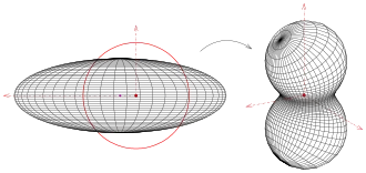 Inversion d'un sphéroïde (au niveau de la sphère rouge)