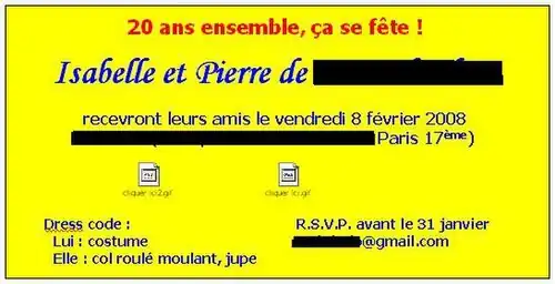 Dans l'exemple de l'illustration donnée, Isabelle et Pierre ont un attrait particulier pour le vêtement moulant, le col roulé en particulier. Ils organisent des soirées en précisant le code vestimentaire. L'illustration est la numérisation de leur invitation reçue par messagerie, en format .doc.