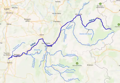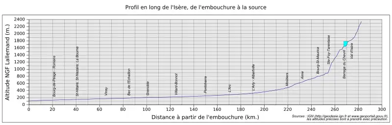 - 1 2 3 4 Sandre, « Fiche cours d'eau - L'Isère (W---0000) » (consulté le )