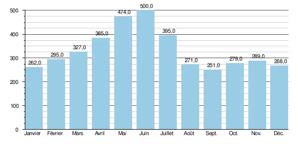 Le débit instantané maximal enregistré a été de 2 050 m3/s le , tandis que la valeur journalière maximale était de 1 510 m3/s le de la même année.
