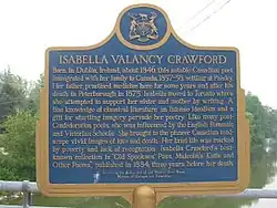 Isabella Valancy Crawford a été désignée personne d'importance historique nationale en 1947.