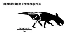 Ischioceratops est un genre éteint de petits dinosaures cératopsiens herbivores qui vivaient il y a environ 69 Ma au cours de la dernière partie du Crétacé dans ce qui est aujourd'hui la Chine.