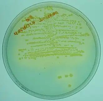 Une fois l'isolement effectué et incubé, des colonies bactériennes apparaissent; elles sont d'aspect M, R ou S[4]. Outre la macroscopique, les variations de couleur du milieu ou des colonies permettent de déterminer des caractères biochimiques des microorganismes des colonies.