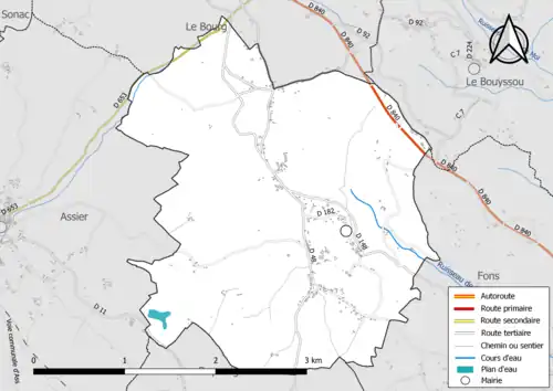 Les communes limitrophes sont Assier, Le Bourg, Le Bouyssou, Fons et Reyrevignes.