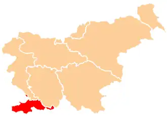 La Riviera slovène (slovène : Slovenska obala) est située en Istrie slovène ; les deux termes sont parfois utilisés de manière interchangeable, notamment dans les médias, [citation nécessaire] bien que l'Istrie slovène comprenne une zone géographique plus large.
