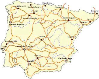 Il est décrit 34 voies pour la provinces de l'Hispanie.