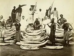 Le commerce (légal ou non) de l'ivoire a encouragé un trafic international, et une chasse et un braconnage qui ont décimé les populations d'éléphants et de rhinocéros.