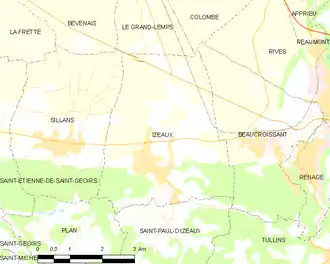 Plan de la commune d'Izeaux et de ses communes limitrophes