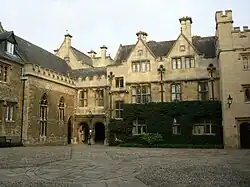En , Tolkien entame ses études en lettres classiques à Oxford, à Exeter College ; l'un de ses principaux professeurs est le philologue Joseph Wright, qui a une grande influence sur lui. Il s'intéresse au finnois afin de lire le Kalevala dans le texte, approfondit sa connaissance du gallois et s'implique dans la vie sociale de son collège en continuant à jouer au rugby et en devenant membre de plusieurs clubs étudiants[24]. Cependant, les auteurs grecs et latins l'ennuient, ce qui se ressent dans ses notes : la seule matière où il excelle est son sujet libre, la philologie comparée. En 1913, avec la bénédiction de son tutor, le vice-recteur Farnell, Tolkien change de cursus au profit de la littérature anglaise, et choisit comme spécialité la philologie scandinave. Dès lors, Kenneth Sisam devient son nouveau tutor[25].