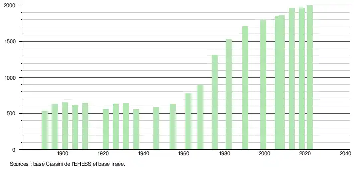 - ↑ Fiches Insee - Populations de référence de la commune pour les années 2006, 2007, 2008, 2009, 2010, 2011, 2012, 2013, 2014, 2015, 2016, 2017, 2018, 2019, 2020, 2021 et 2022.