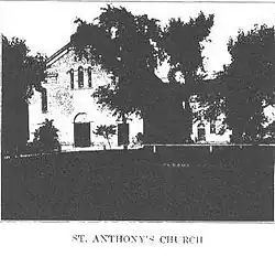La reconstruction de l'église Saint-Antoine date de 1850. Elle est agrandie et transformée en église de pierre néoclassique à la grecque, particulièrement sobre, mesurant 84 pieds sur 44 pieds. Elle est consacrée en 1853. La paroisse n'a jamais été riche du temps de l'abbé Pelamourgues et les travaux de finition prennent du temps. Lui-même quitte Davenport pendant l'année 1852 pour se rendre en France au chevet de son père mourant.