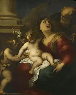 - ↑ Huile sur toile, 121 x 98,3 cm. Vente Londres (Sotheby's), 8 juillet 2009, lot. 30. Gravé par Coelemans en 1709 pour le recueil publié par Mariette en 1744 (planche 23)