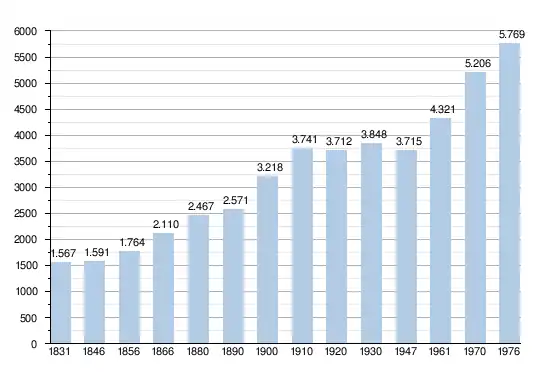 Les chiffres des années 1831 à 1970 tiennent compte des chiffres des anciennes communes fusionnées.