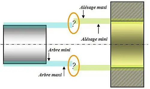 - avec jeu: pour toute pièce contenant et toute pièce contenue prises dans les deux populations, le contenant est plus grand que le contenu. C'est le cas recommandé pour les guidages qui ne doivent pas coincer.