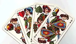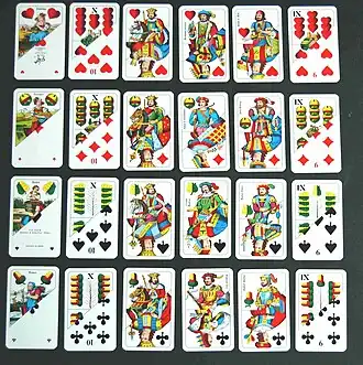 Dans la plupart des variantes actuelles, les jeux de cartes germaniques comptent 36 cartes et possèdent les valeurs de 6 à 10, l’Unter (littéralement « [valet] inférieur », correspondant au valet des jeux de cartes français), l'Ober (« valet ») qui correspond à la dame, le roi et le Daus (correspondant à l'as).
