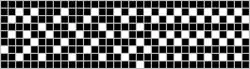 Détails sur la dynamique du réseau : ce « U » de sept cellules (également appelé « heptomino pi ») évolue vers une structure complexe et « organique » en passant par des formes très esthétiques. De plus, la structure est autoreproductible avec un déphasage, la nouvelle structure fille (itération 45) interférant avec une version de la structure mère (itération 15) en cours d’évolution. À l’itération 110, on obtient cette image de « clown ». Puis le réseau se stabilise sur une forme stable oscillante complexe[8].