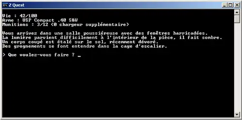 - Malgré la simplicité de programmation, créer un jeu textuel demande cependant beaucoup de temps et de patience pour obtenir un résultat de qualité, car il peut être compliqué de se répartir la programmation à plusieurs sur un jeu de ce type.