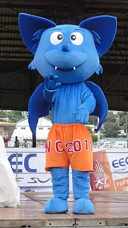 Une première mascotte avait été adoptée le , avant d'être retirée dès le lendemain à la suite d'une suspicion de plagiat. Elle représentait un margouillat également bleu, avec une crête aux trois couleurs des Jeux (bleu, rouge et jaune) et une médaille d'or autour du cou, et tenant dans la main la torche devant allumer la vasque (et dont la flamme reprend les mêmes trois couleurs). L'animal offrait une trop forte ressemblance avec un logo déjà présent sur internet[6].