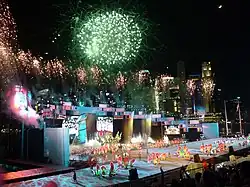 - ↑ (en) Opening ceremony lights up Singapore’s skies!, olympic.org