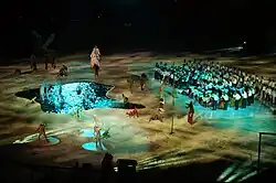 Franco Dragone, ancien directeur du Cirque du Soleil est le concepteur de la cérémonie[22]. À cette occasion, plus de 100 spécialistes étrangers viennent en Colombie[23]. Pour préparer la scène, le gazon du terrain est momentanément enlevé, un total de 10 000 mètres carrés étant nécessaire au montage inaugural[24]. Il est également nécessaire d'avoir un système d'éclairage d'un million de watts, 150 000 watts de son, 10 000 mètres de câbles distribués à travers la scène et 150 000 kilos de matériel. Les préparatifs de la cérémonie d'ouverture ont empêché le stade Atanasio Girardot d'accueillir toute autre activité durant le mois de mars[23].