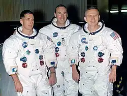 - ↑ (en) Associated Press, « Agnew Confers Awards on Crews of 3 Apollos », Arizona Republic, Phoenix, , p. 23 (lire en ligne, consulté le ).