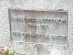 Plaque apposée sur la tombe de Jim Morrison, portant l'inscription en grec :