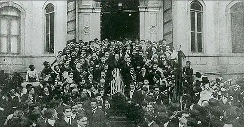 Sur le modèle de l’Académie française, Medeiros e Albuquerque, Lúcio de Mendonça, et le groupe d’intellectuels autour de la Revista Brasileira eurent l’idée de créer, puis fondèrent effectivement en 1897, avec l’appui enthousiaste de Machado de Assis, l’Académie brésilienne des lettres, dans le but d’illustrer la culture brésilienne et plus particulièrement la littérature nationale[73],[74]. Machado de Assis fut élu à l’unanimité premier président de la nouvelle Académie, une fois celle-ci installée, le de la même année[75].