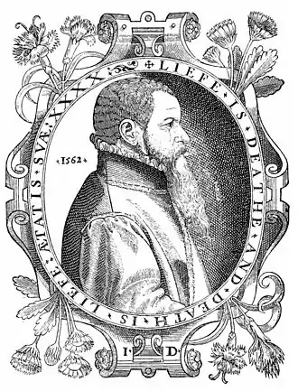 - ↑ Evenden[Qui ?] : cette datation se déduit du fait que le pourtour de la gravure ci-contre, représentant Day en 1562, précise que l'imprimeur a alors 40 ans
