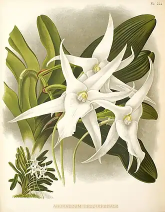 Angraecum sesquipedale, planche botanique de John Nugent Fitch illustrant The Orchid Album.