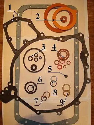 Ces joints sont en papier ou liège enduit, ou comme les joints de culasse, en amiante revêtu de cuivre. Il est possible, pour des besoins spécifiques, de découper à la demande des joints dans des feuilles spéciales.