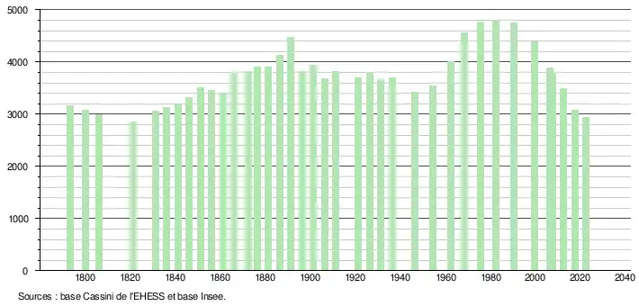 - ↑ Population municipale de référence en vigueur au 1er janvier 2025, millésimée 2022, définie dans les limites territoriales en vigueur au 1er janvier 2024, date de référence statistique : 1er janvier 2022.