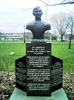 José Rizal, de son nom complet José Protasio Rizal Mercado y Alonzo Realonda, né le à Calamba dans la province de Laguna (Philippines) et mort fusillé le à Manille, est un poète, romancier, et artiste philippin (également médecin, chirurgien ophtalmologue, et linguiste). Il joua un rôle important dans la lutte pour l'émancipation du peuple philippin pendant la colonisation espagnole, ce qui lui valut d'être exécuté à 35 ans.