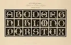 - Alphabet-Album : collection de soixante feuilles d’alphabets historiés et fleuronnée tirés des principales bibliothèques de l’Europe ou composés par Silvestre, professeur de calligraphie des princes. Paris : gravés par Girault, 1843. Cat. Destailleur n° 836.