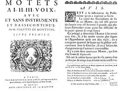 Valette de Montigny. Frontispice et Avertissement des Motets.