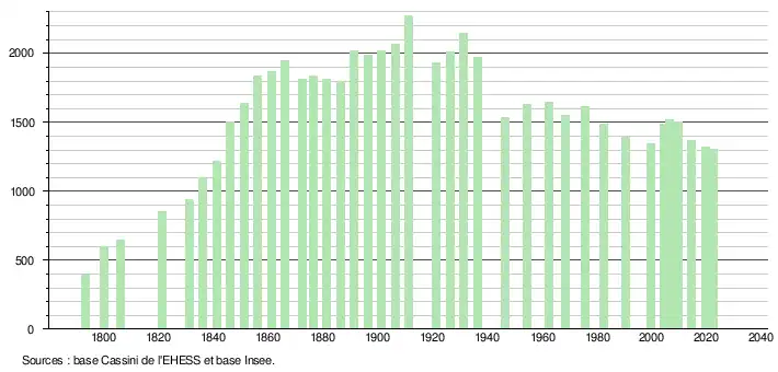 En 2022, la commune comptait 1 306 habitants[Note 3], en évolution de −4,25 % par rapport à 2016 (Cher : −2,48 %, France hors Mayotte : +2,11 %).