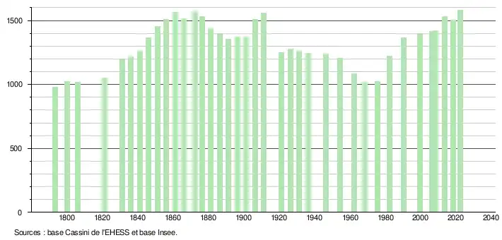 - ↑ Fiches Insee - Populations de référence de la commune pour les années 2006, 2007, 2008, 2009, 2010, 2011, 2012, 2013, 2014, 2015, 2016, 2017, 2018, 2019, 2020, 2021 et 2022.