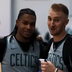 Juhann Begarin et Sam Hauser lors de la NBA Summer League 2022.